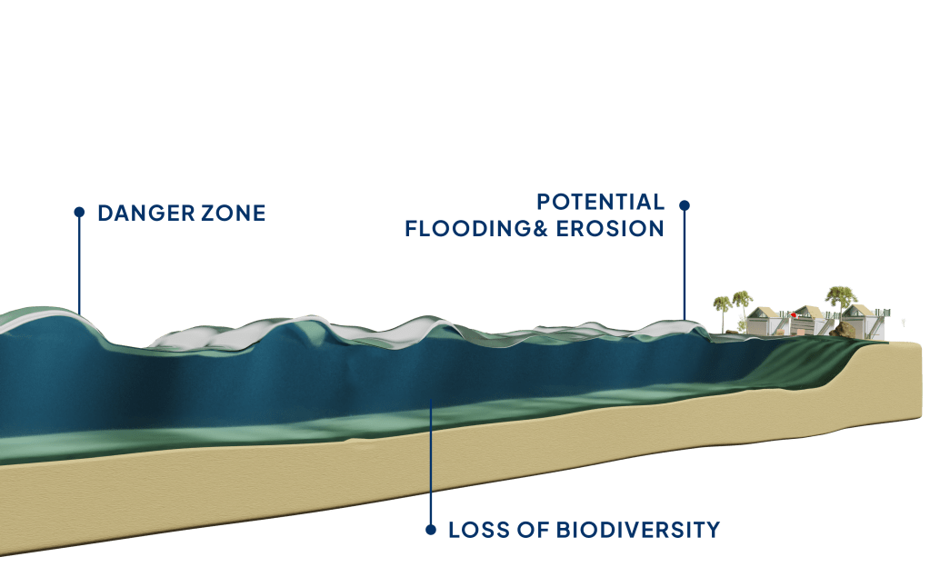 The breaking of the waves will protect assets such as resorts from harsh wave action and flooding.